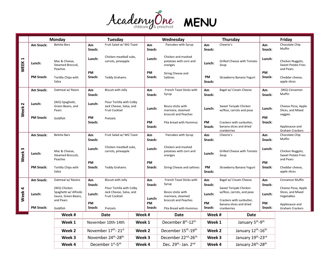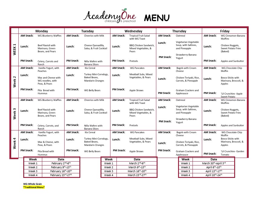 At AcademyOne, every meal matters. Our menus are carefully planned using federal dietary guidelines and crafted to fuel growing bodies and active minds. As a proud Ohio Healthy Program Certified center, we go beyond meeting standards, we set the bar for balanced, wholesome meals that children actually enjoy. From hot, healthy lunches to nutritious snacks, we make healthy eating a natural (and tasty!) part of every child’s day.